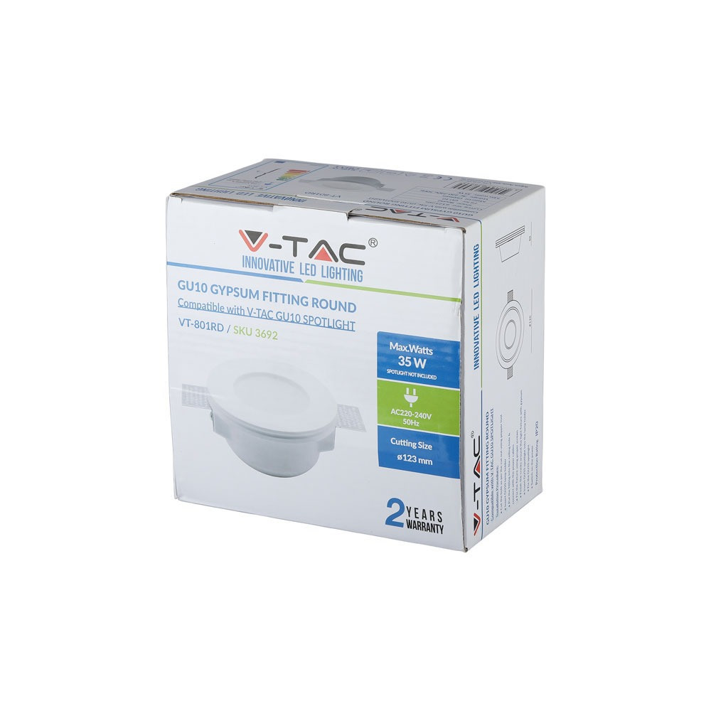 Mennyezeti lámpatest süllyesztett GU10 kerek fehér VT-801 V-TAC