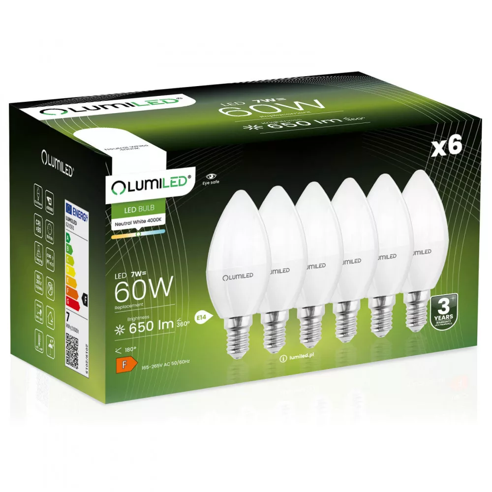 6x LED GYERTYA izzó készlet B35 E14 7W = 60W 650lm 4000K Semleges 180° LUMILED